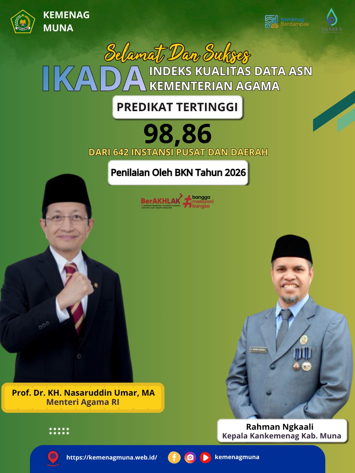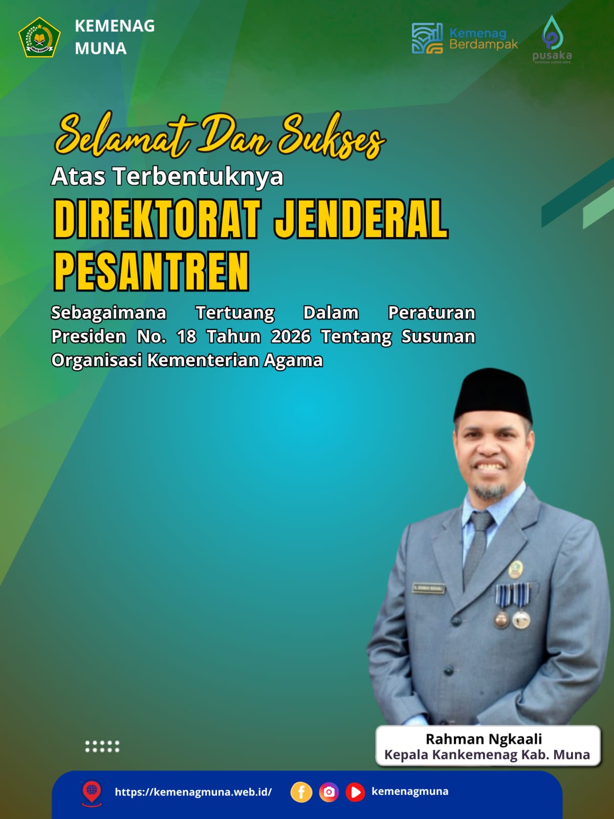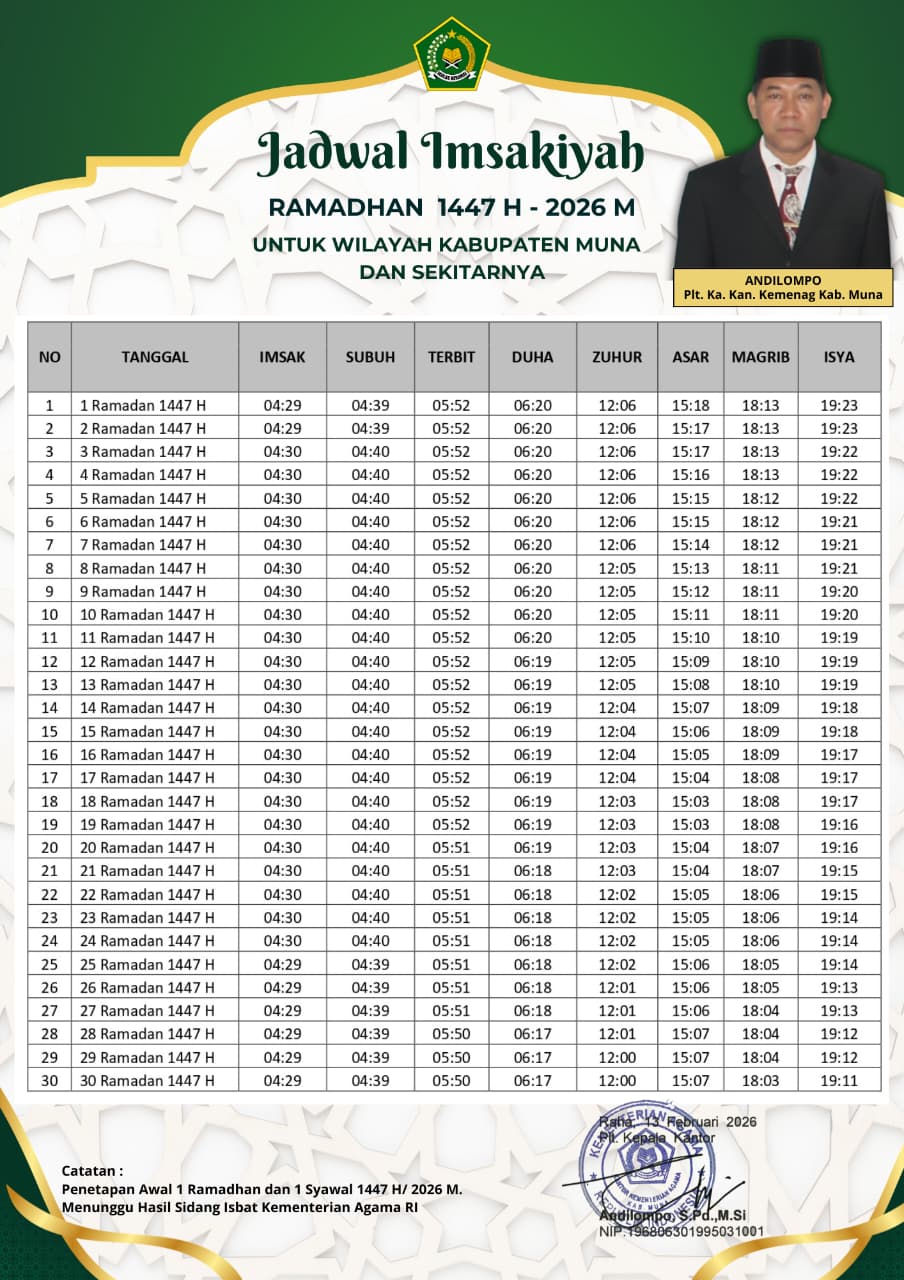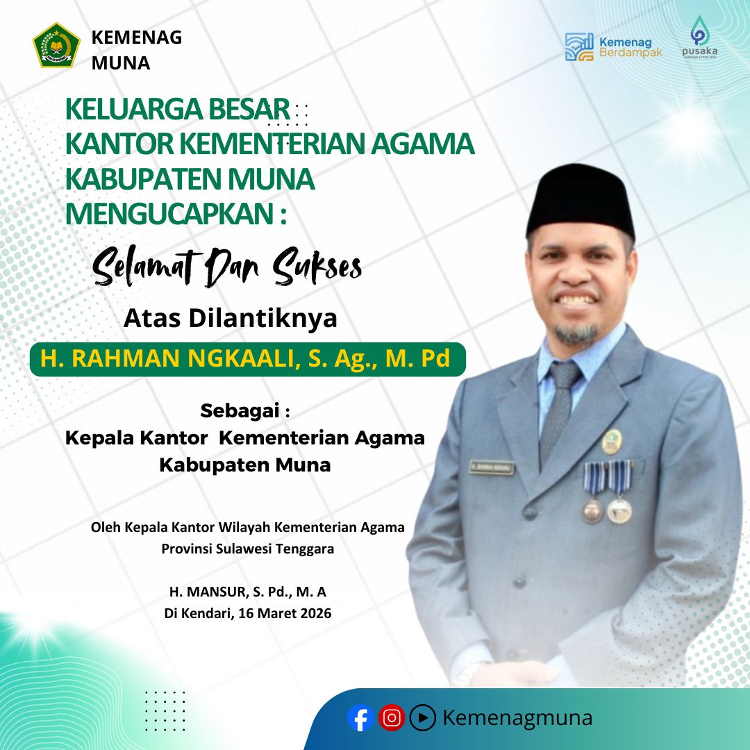 Salam #Sahabatreligi… Raha(Humas Sultra)—Kepala Kantor Kementerian Agama Kabupaten Muna(Rahman Ngkaali) hadir dan memberikan sambutan dalam Pembukaan Musabaqah … Kakan Kemenag Muna Hadiri dan Beri Sambutan Pembukaan MTQ Ke-XXXI Tahun 2026Read more
