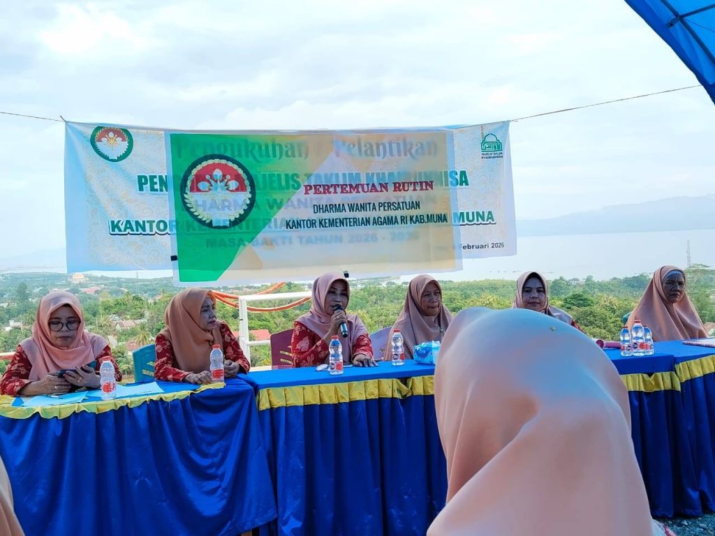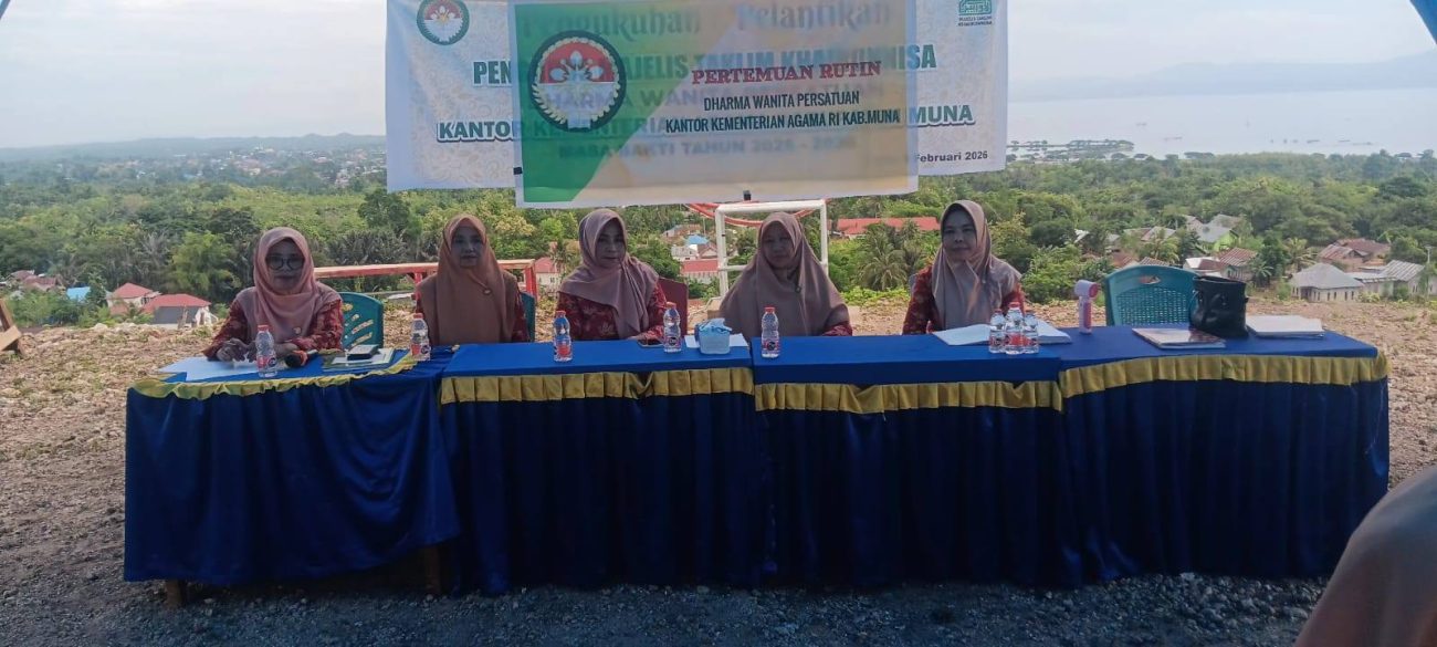 Raha(Humas Sultra)—Pelaksana Tugas(Plt) Kepala Kantor Kementerian Agama Kab. Muna(Andilompo) Hadiri sekaligus Kukuhkan serta melantik Pengurus Majelis Taklim Khairunnisa Dharma Wanita Persatuan(DWP) Kantor Kementerian Agama Kab. Muna Masa Bakti Tahun 2026-2030. Bertempat di Puncak Anangkapili Desa Ghonsume Kec. Duruka Kab. Muna. Ahad(08/02/2026)