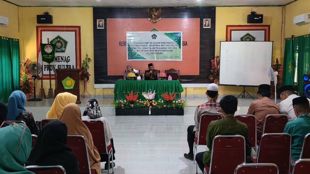 Raha(Humas Sultra)—Kantor Kementerian Agama Kab. Muna melalui Seksi Pendidikan Diniyah dan Pondok Pesantren, lakukan Pembinaan Dan Penguatan Pemutakhiran Data Emis Pondok Pesantren, MDT, LPQ Dan TPQ Semester Genap Tahun Pelajaran 2025/ 2026 Lingkup Kantor Kementerian Agama Kab. Muna. Bertempat di Aula Kantor Kementerian Agama Kab. Muna. Rabu(01/04/2026).