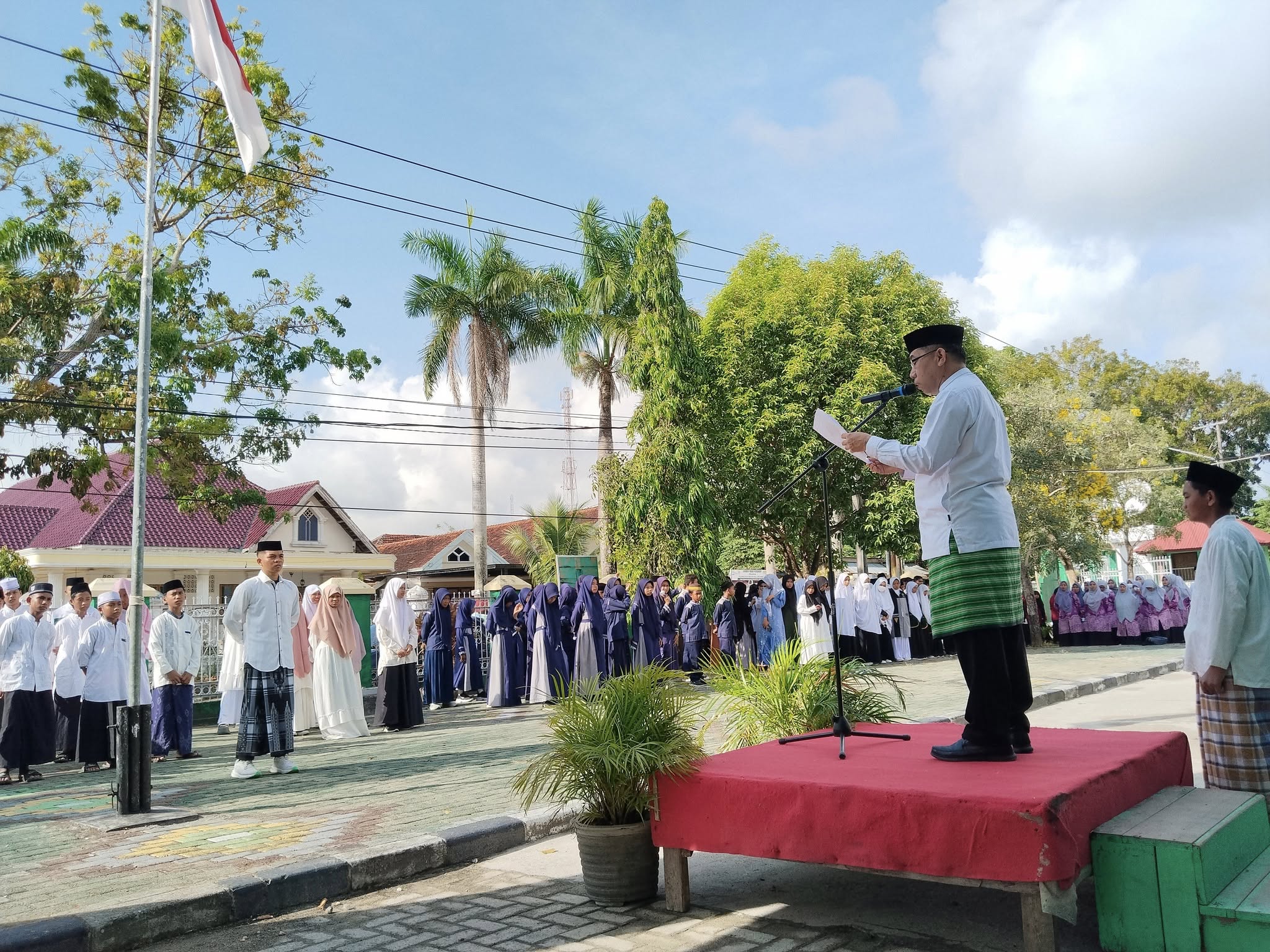Raha(Humas Sultra)—Bertempat di Halaman Kantor Kementerian Agama Kab. Muna, Plt. Kepala Kantor Kementerian Agama Kab. Muna(Andilompo) Pimpin Pelaksanaan Apel Hari Santri Nasional Tahun 2025.Rabu(22/10/2025)