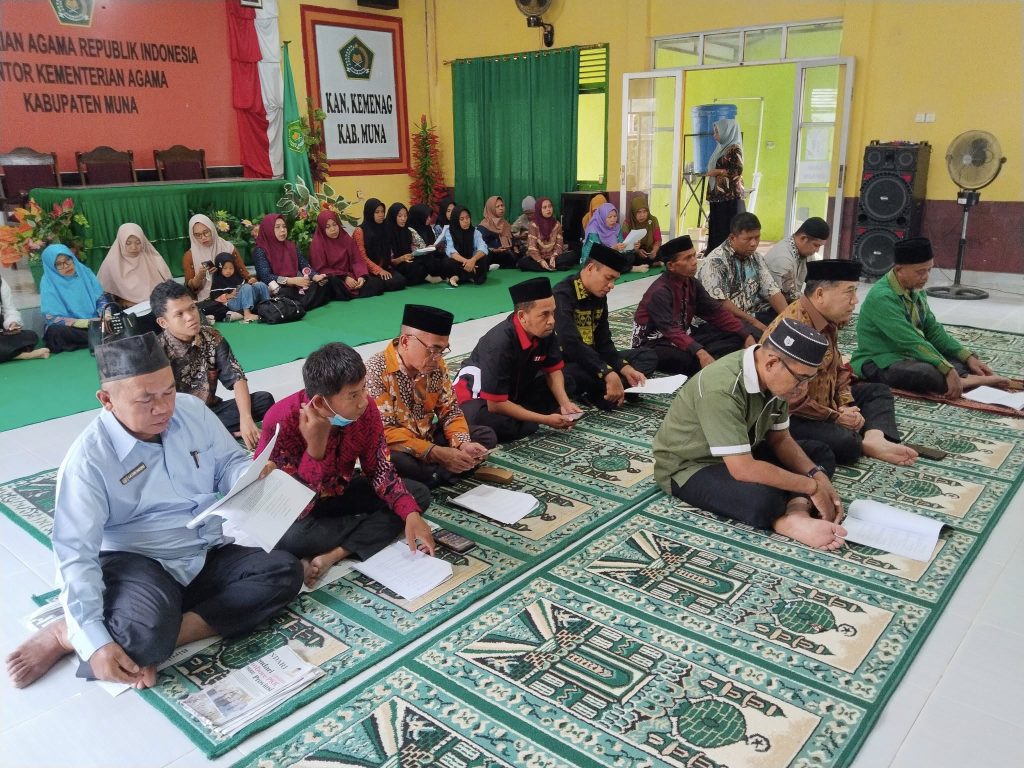 Raha(Humas Sultra)—Plt. Kepala Kantor Kementerian Agama Kab. Muna(Andilompo) bersama Jajarannya mengikuti secara Virtual Zoom Dzikir dan Doa Bersama Untuk Keselamatan Bangsa dan Negara yang Rutin dilaksanakan setiap Hari Kamis Bulan berjalan. Bertempat di Aula Kantor Kementerian Agama Kab. Muna. Kamis(06/11/2025)