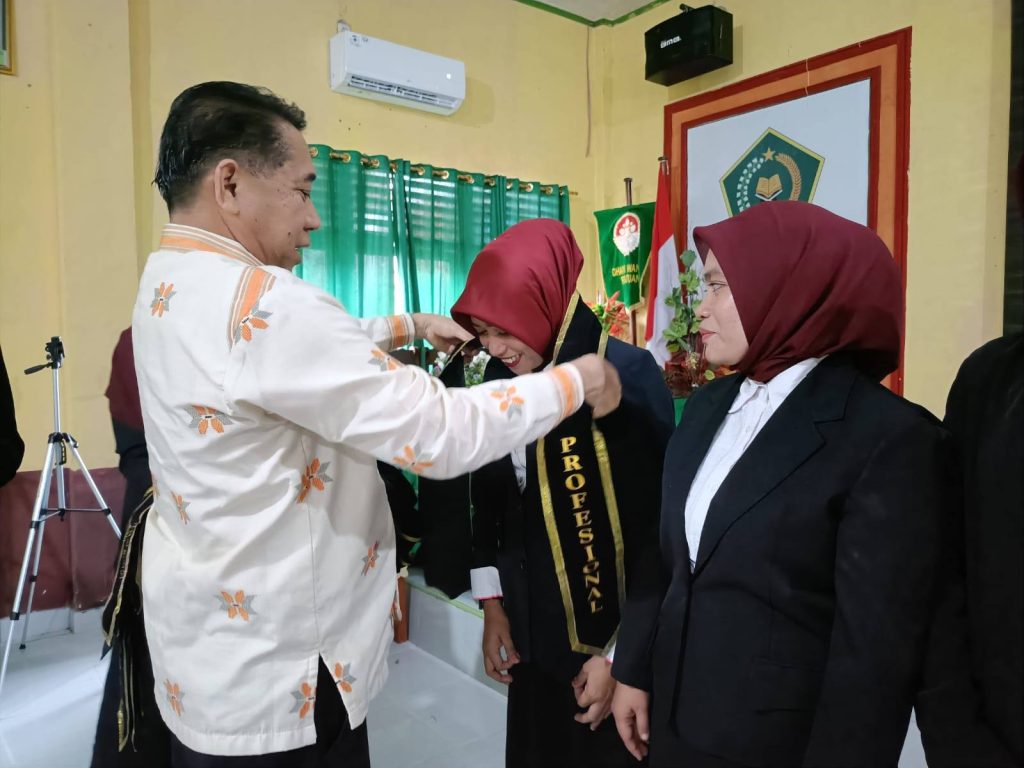 Kegiatan di lanjutkan dengan penyematan selempang Oleh Plt. Kepala Kantor Kementerian Agama Kab. Muna.