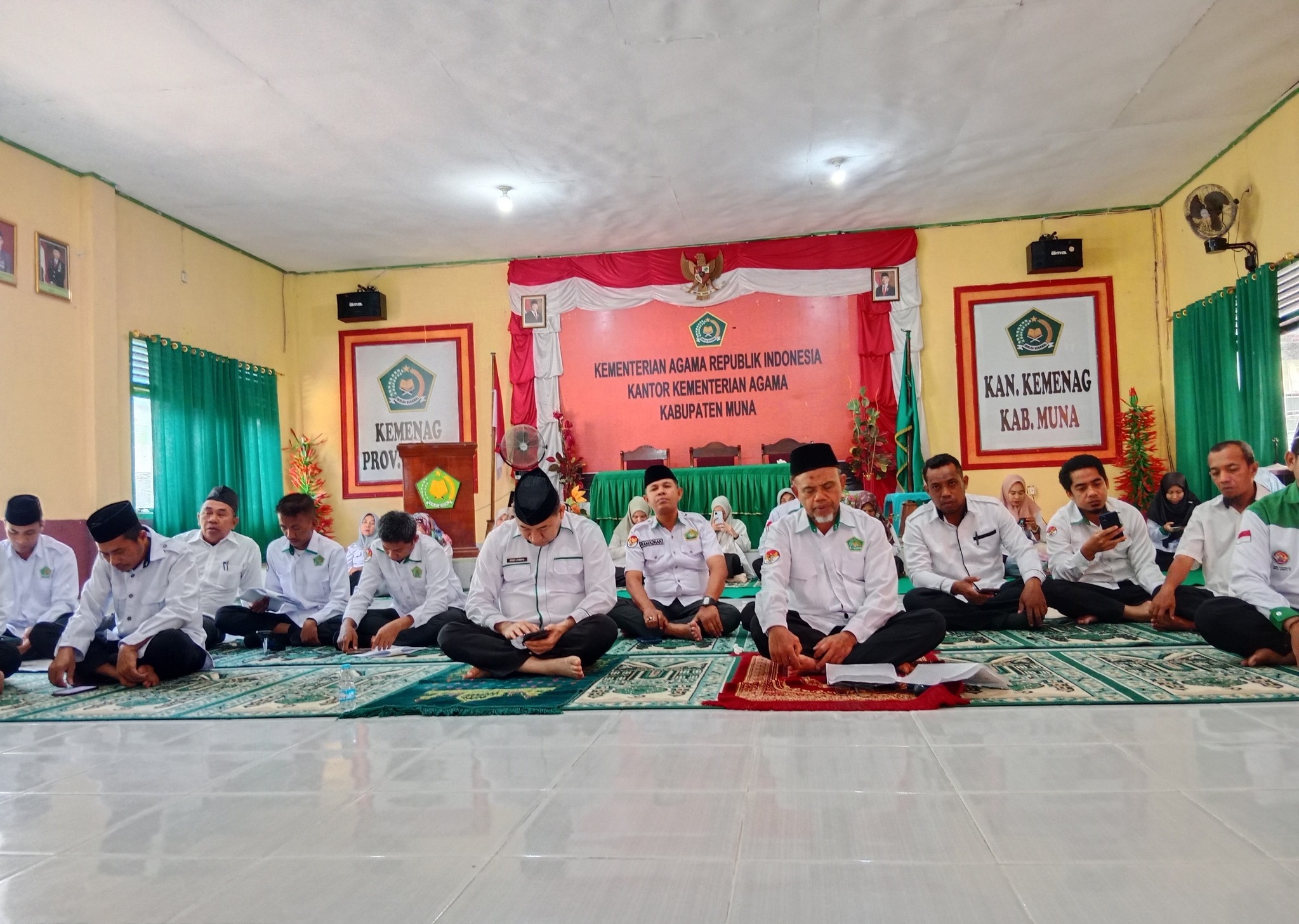 Plt. Kepala Kantor Kementerian Agama Kab. Muna(Andilompo) bersama jajarannya hadir dan mengikuti secara Virtual Zoom Meeting Kegiatan Dzikir Dan Do’a Kebangsaan Lintas Agama Untuk Keselamatan Bangsa Dan Negara Dari Sultra Untuk Indonesia. Bertempat di Aula Kantor Kementerian Agama Kab. Muna. Selasa(02/09/2025)